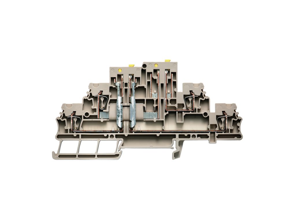 ZDTR 2.5 je dvouvrstvá testovací odpojovací svorka řady Z určená pro bezpečné měření a odpojování obvodů. Využívá pružinové upínání (tension/spring clamp) pro spolehlivé připojení vodičů do 2,5 mm². Jmenovitě 400 V / 16 A, se čtyřmi připojovacími místy a doporučeným odizolováním 10 mm.