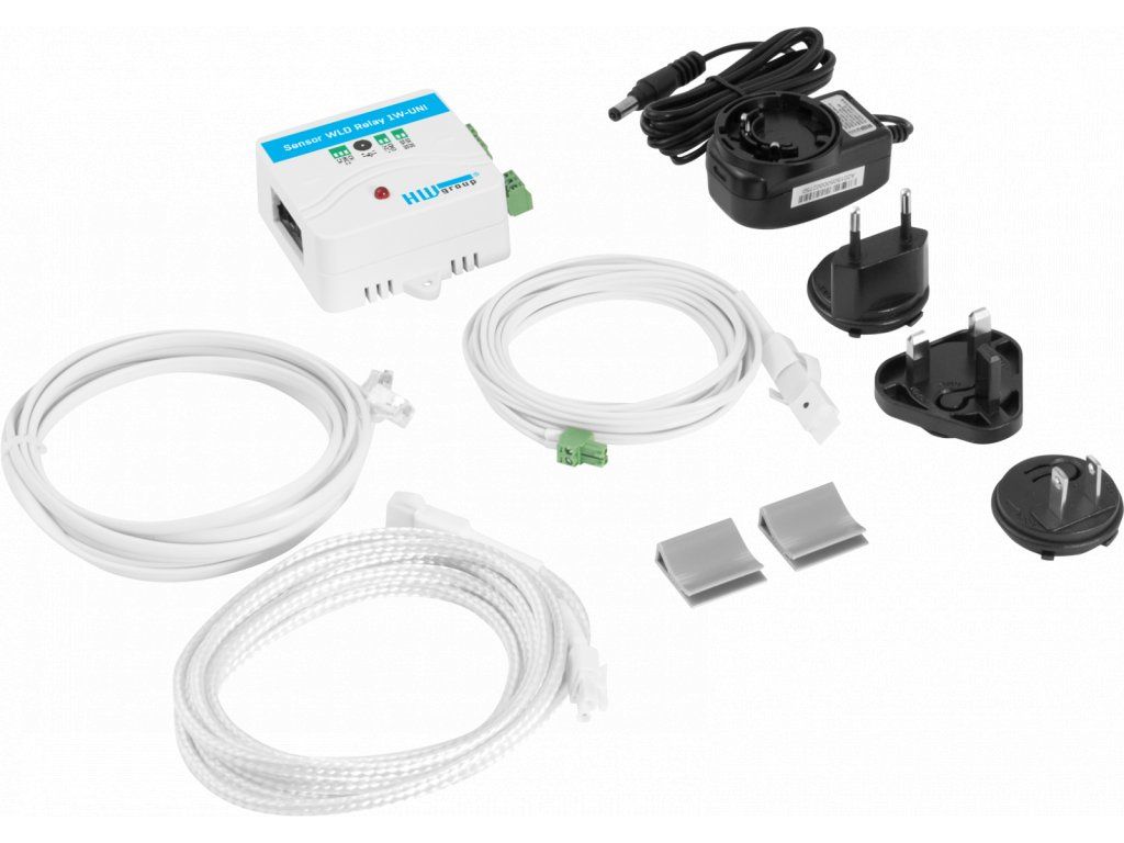 HWg-WLD Relay Set je sada pro detekci úniku vody a jiných vodivých kapalin. Obsahuje monitorovací jednotku HWg-WLD2 a detekční kabel pro identifikaci přítomnosti kapaliny. Systém umožňuje včasné odhalení úniku a minimalizaci škod. Jednotka komunikuje přes Ethernet a umožňuje vzdálený monitoring pomocí SNMP. Reléový výstup umožňuje přímou signalizaci nebo ovládání externích zařízení.